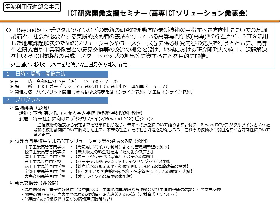 - 1.11 ICT研究開発支援セミナー(高専ICTソリューション発表会)