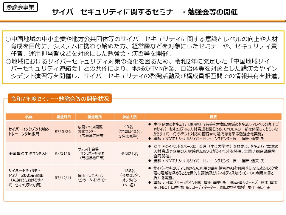 - 1.2 サイバーセキュリティに関するセミナー・勉強会
