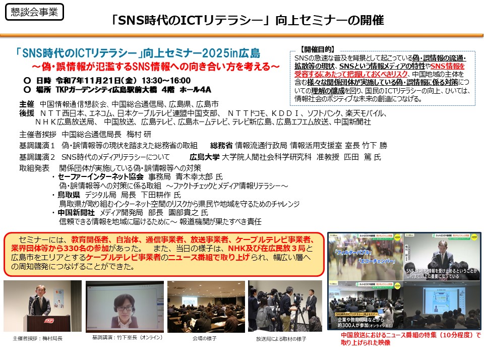 - 1.5 「SNS時代のICTリテラシー」向上セミナー2025 in 広島(講演資料あり)