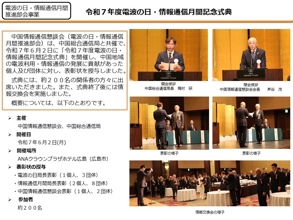 - 1.15 令和7年度電波の日・情報通信月間記念式典
